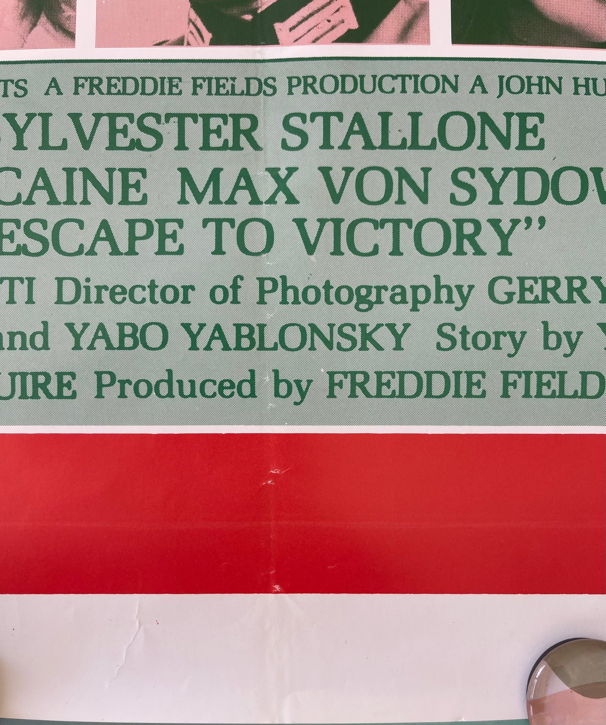 Experience the power of teamwork and the thrill of the beautiful game with this original Australian one sheet cinema poster of the exhilarating film "Escape to Victory" (1981). Directed by John Huston, this gripping sports drama takes you on a remarkable journey as a group of Allied prisoners of war engage in a high-stakes football match against their German captors during World War II. The poster captures the spirit of camaraderie and determination, featuring an ensemble cast that includes Sylvester Stallone, Michael Caine, and Pelé. With its dynamic design and captivating imagery, this poster transports you to the heart of the action on the football field. A must-have for sports enthusiasts and fans of uplifting storytelling, the "Escape to Victory" cinema poster is a collector's treasure that celebrates the resilience of the human spirit and the universal language of sports. Join the team and feel the exhilaration of victory.