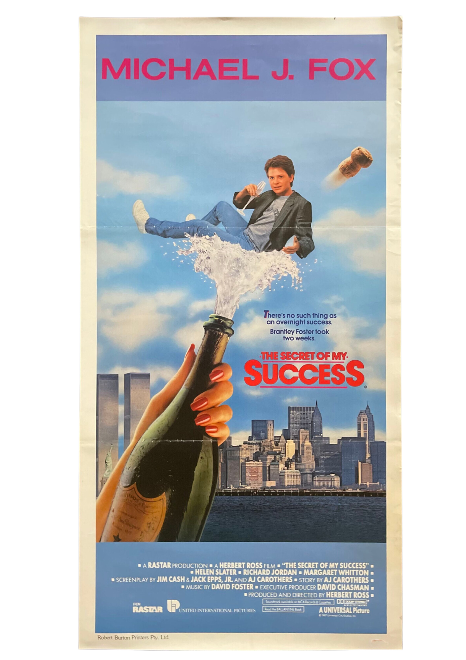 Embark on a comedic journey of ambition and corporate antics with this original Australian daybill cinema poster for "The Secret of My Success" (1987). Directed by Herbert Ross and starring Michael J. Fox, this romantic comedy follows a young man's hilarious endeavors to climb the corporate ladder. The poster's vibrant and dynamic design will bring a touch of enthusiasm and motivation to your space, reminding you to chase your dreams fearlessly. Measuring 13 x 30 inches, this daybill cinema poster is a delightful addition to your collection, inspiring you to find success on your own terms.
